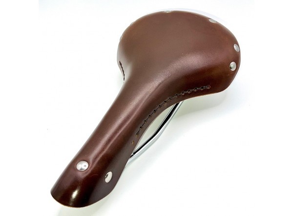 Sillín de piel Gyes SL-06RS color marrón con partes metálicas cromadas
